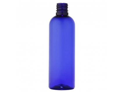 Lahvička PET modrá 100 ml. Úzké hrdlo, se šroubovacím uzávěrem /závit G18x3. Tmavé zbarvení...